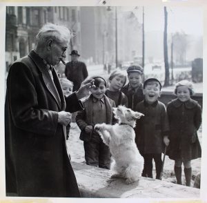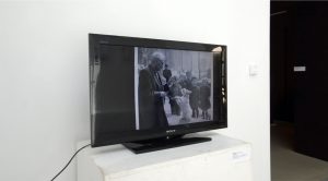 Video duration: 0:55 minutes; video image dimensions: 200 x 196 cm; image and sound editing: Kristina Horvat Blažinović; voice in the video: Gabrijel Hlebec; photo in the video: Ein Hund macht Kunststücke, author unknown, taken from Taschen’s wall calendar “Berlin”, 2012.